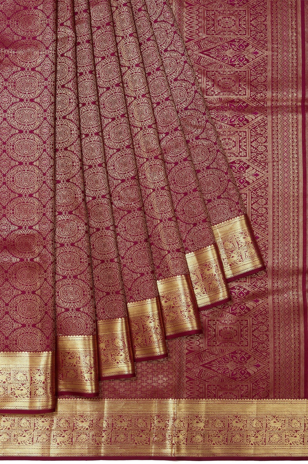 Wine Kancheepuram Silk Hand Embroidered Saree Wedding Wear