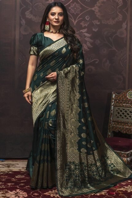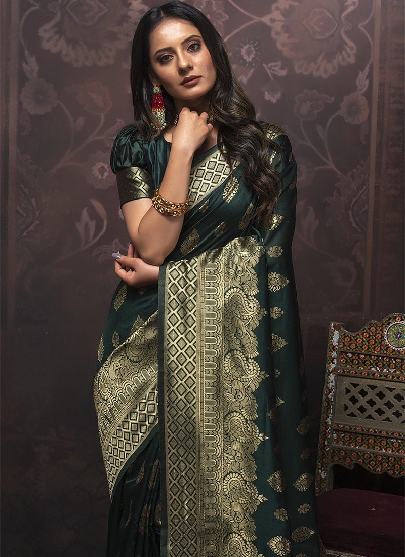 Green Benarasi Silk Jacquard Weaving Saree Festive Wear