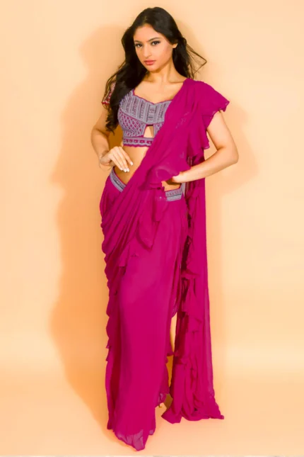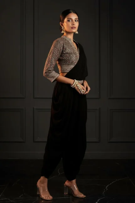 Art Black Embroidered Georgette Dhoti Saree