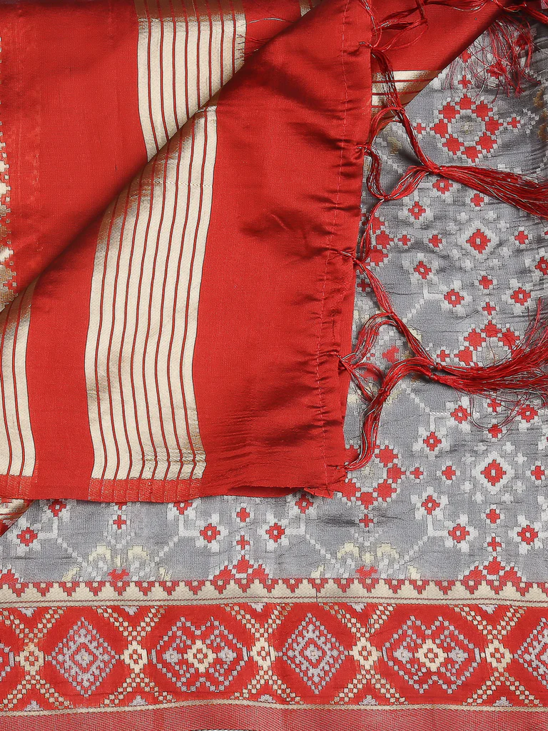 Add a touch of elegance to your wardrobe with this exquisite piece of beautiful Banarasi Silk Dupatta. Swathed with elegant Patola style weaving all over, this classic stunner is a must in your ethnic collection.