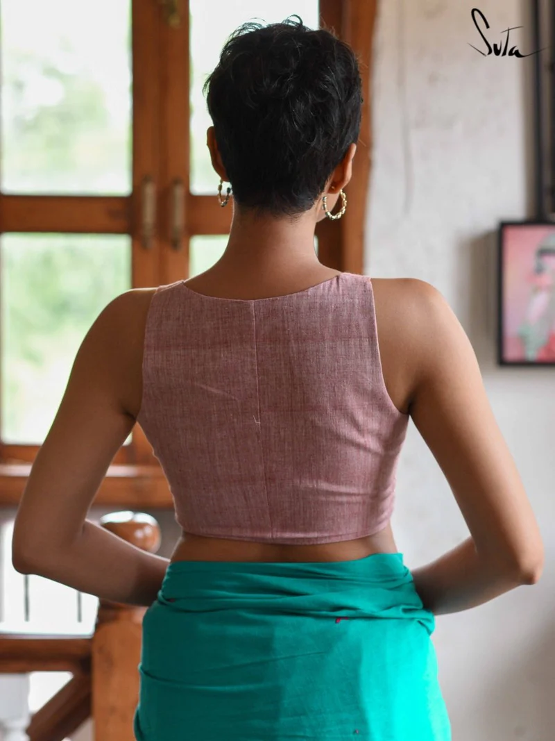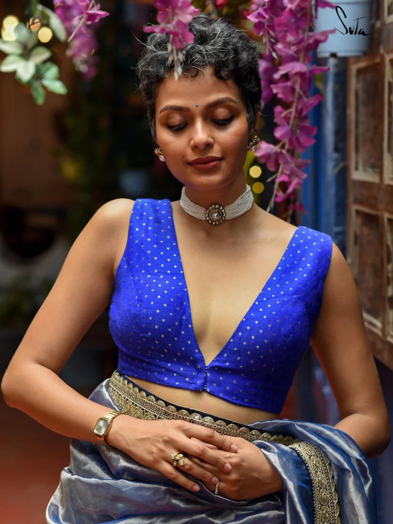 Black Cotton Elbow Sleeve Blouse With V Neck